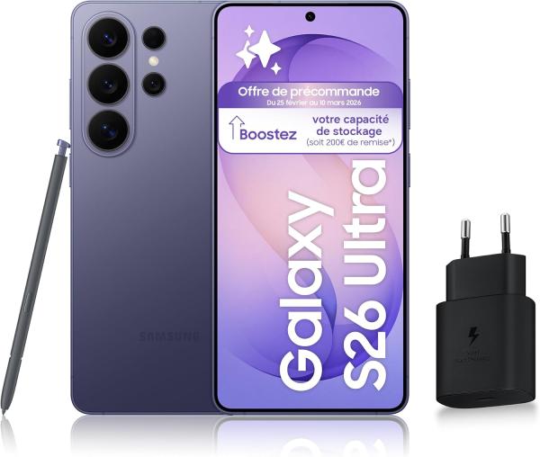 10% de remise sur les précommandes du tout nouveau téléphone connecté Galaxy S26 Ultra de Samsung.