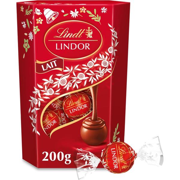 Cornet de chocolats Lindt LINDOR au lait de 200g, parfait pour offrir ou se faire plaisir lors des fêtes de Pâques.