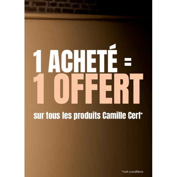 Petit combo sympa chez Pomm'Poire avec 50% de remise sur la collection Camille Cerf. De plus, un deuxième produit vous est offert pour un acheté.