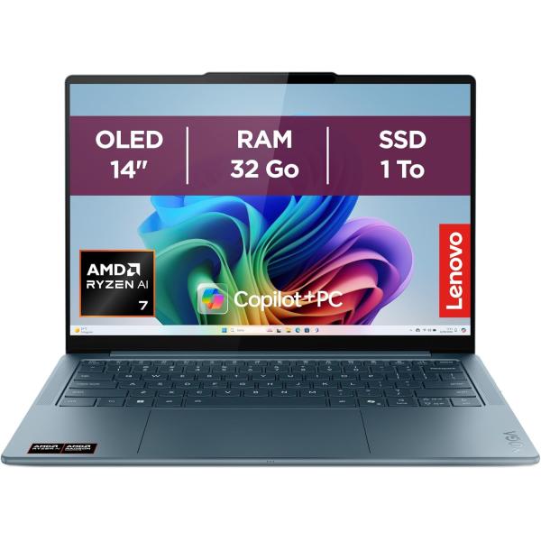 PC portable 14" Lenovo Yoga Slim 7 14AKP10 (Ryzen7, RAM 32Go, SSD 1To, Radeon 860M) - Tidal Teal à 1049,99€